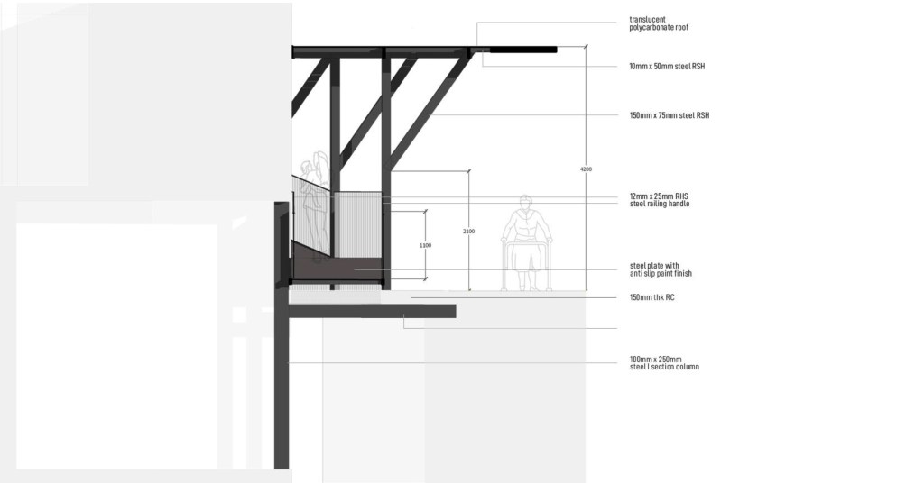 Elevation of ramp from Menara Selatan to cafeteria