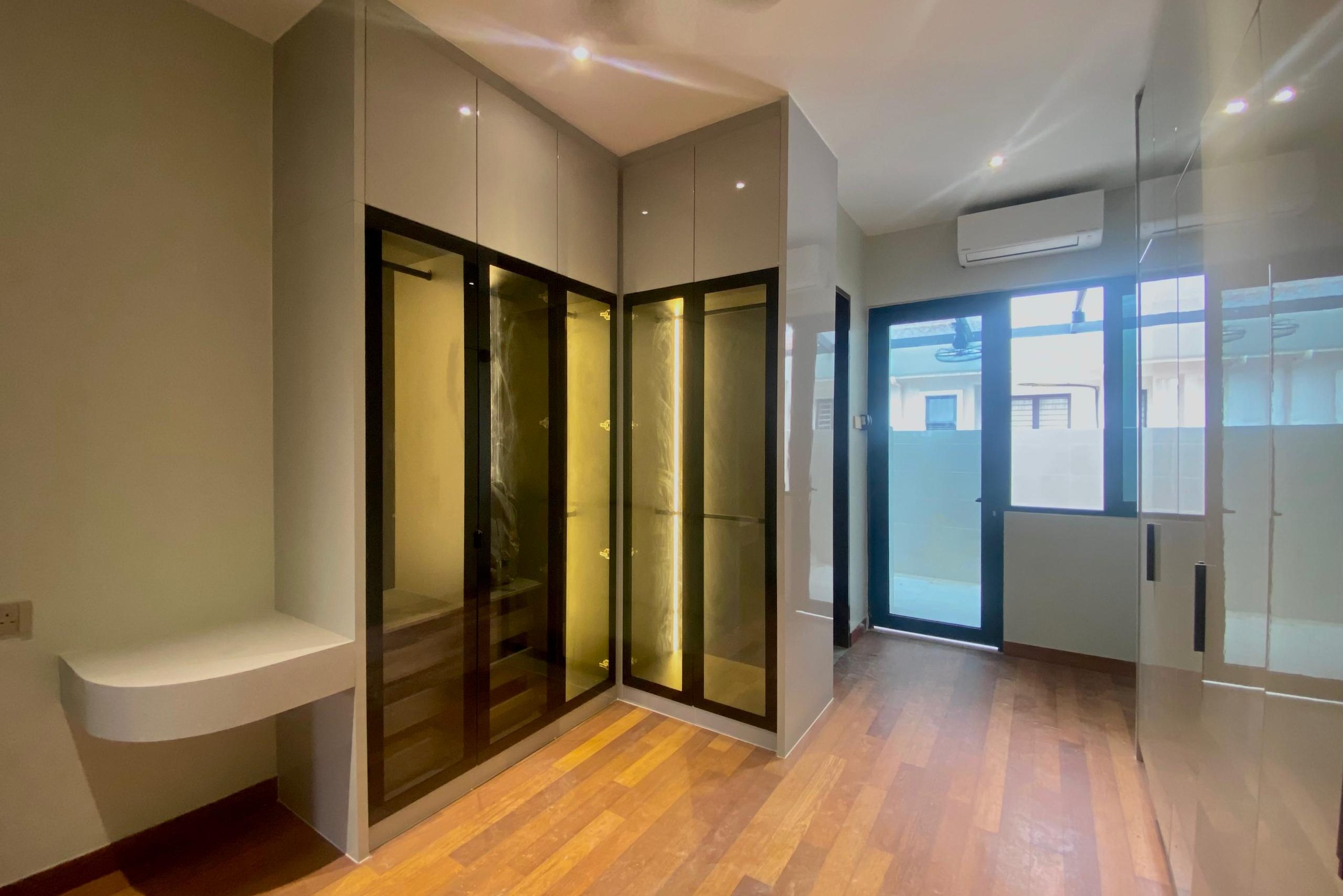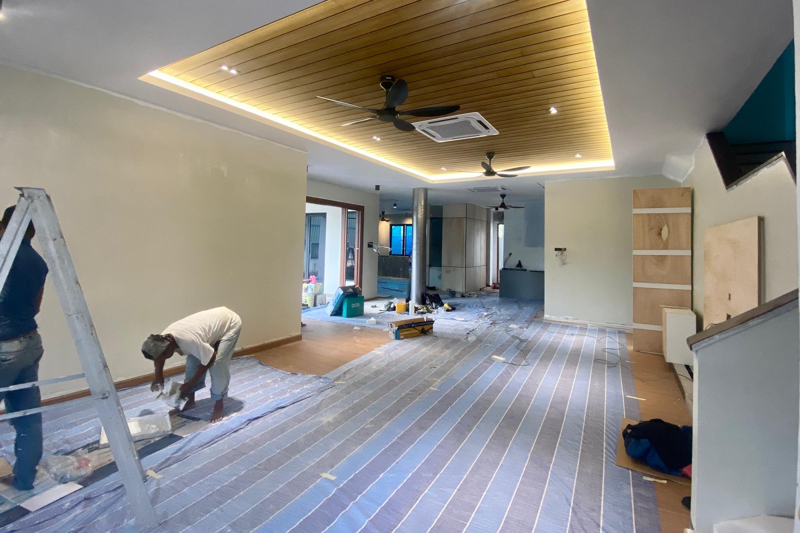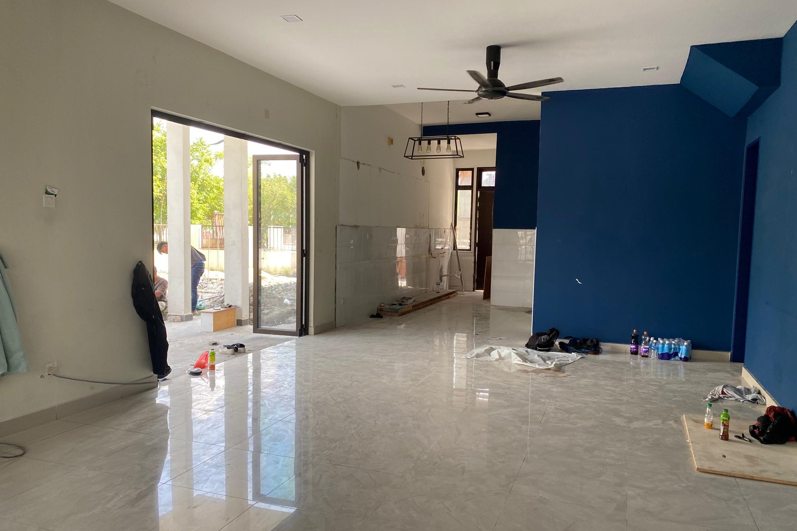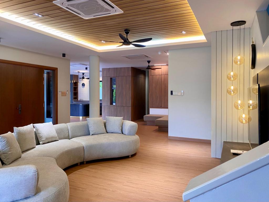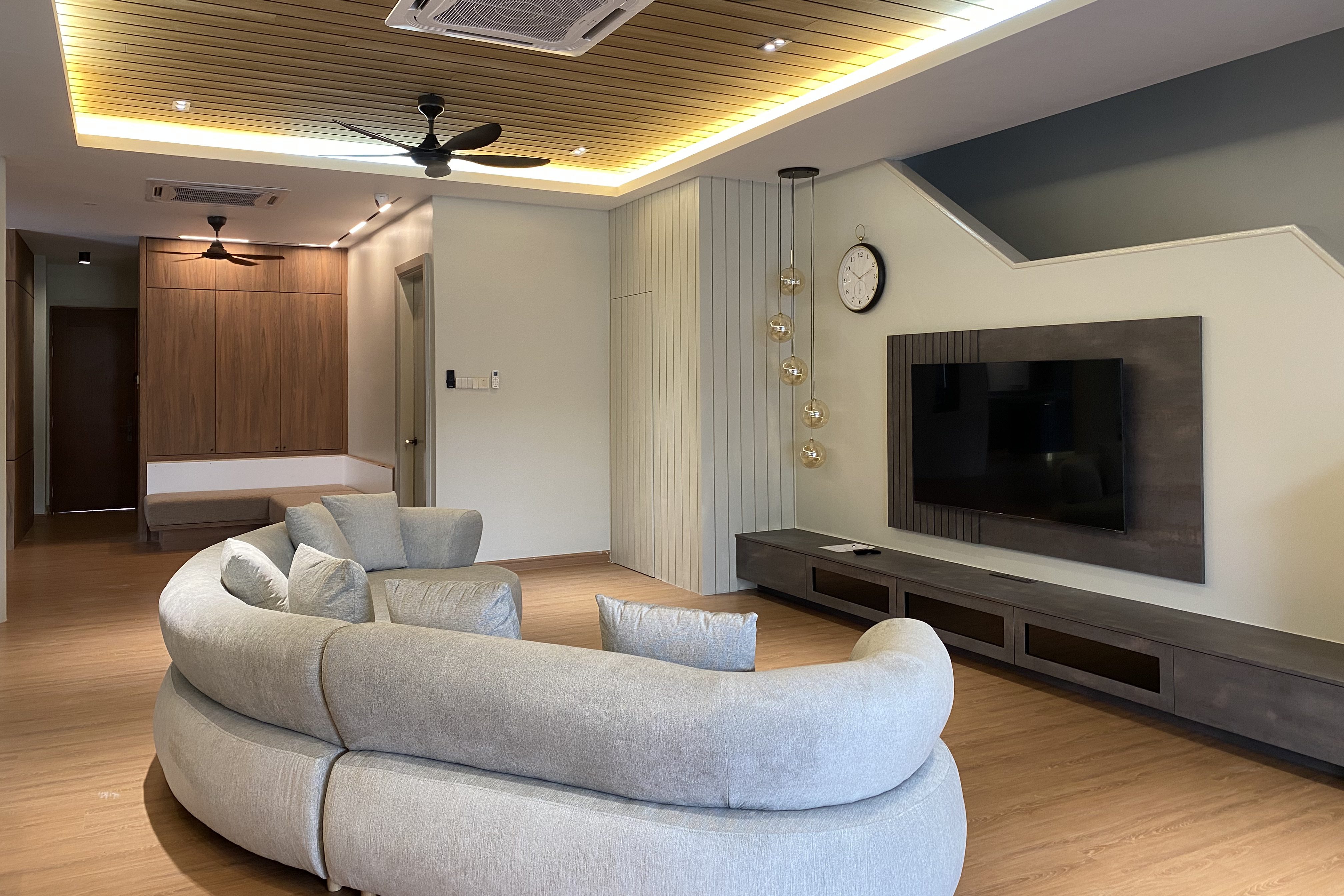 This project features a full-scale renovation and interior design project for a family home in Nukilan, Alam Impian. The ground floor section was redesigned with a warm and modern palette of timber tones, warm grey, and dark navy blue accents. Interior works include furnishing, full-height custom cabinetry, wet and dry kitchen installations, ceiling and lighting upgrades, bathroom fittings, tiling, electrical rewiring, and overall interior finishing. The layout design brings together function and practicality to maximise space, natural light, and seamless flow across the living hall and dining areas.