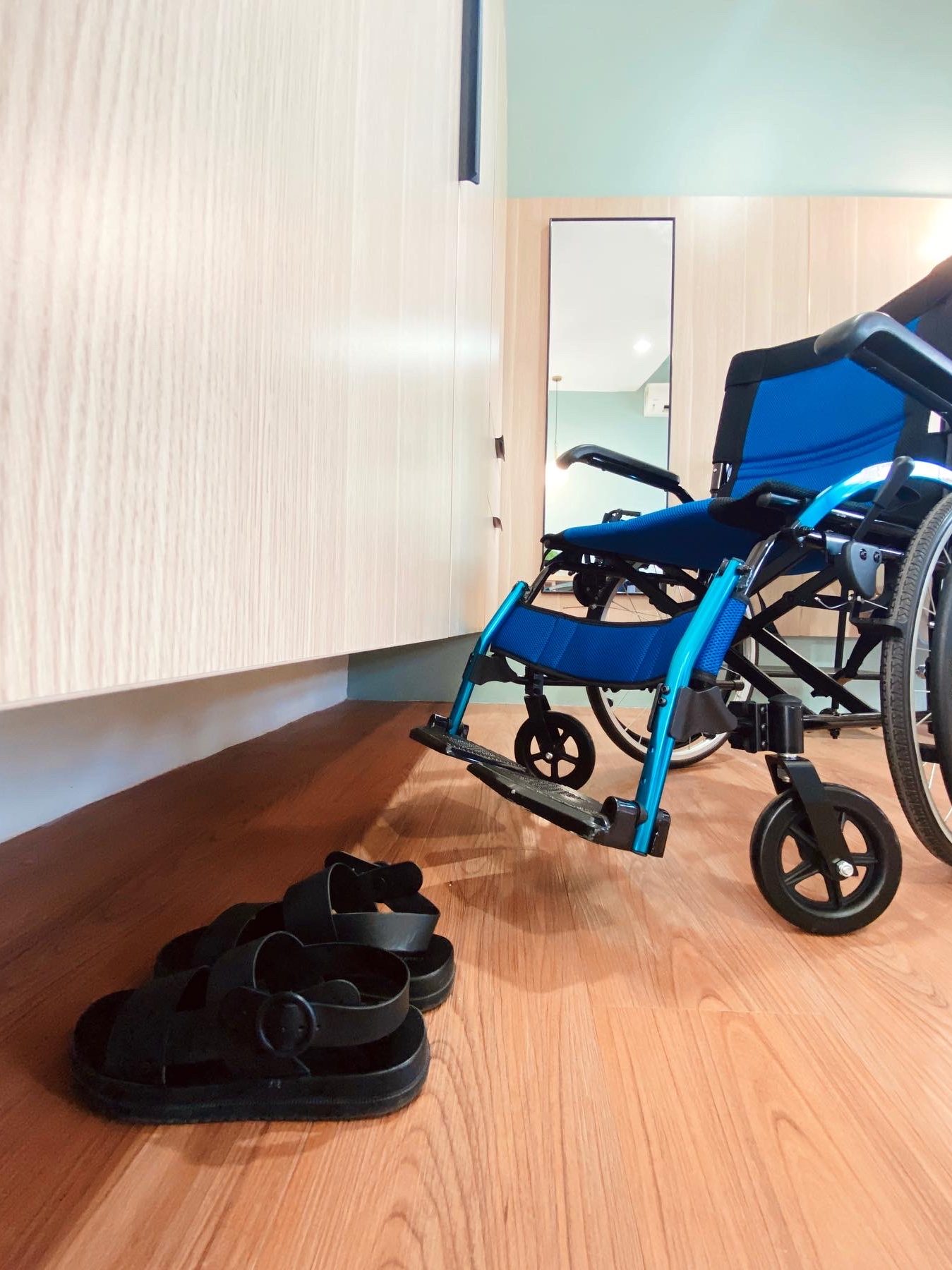 06 / Wardrobe with ample toe space and unobstructed pathway for wheelchair