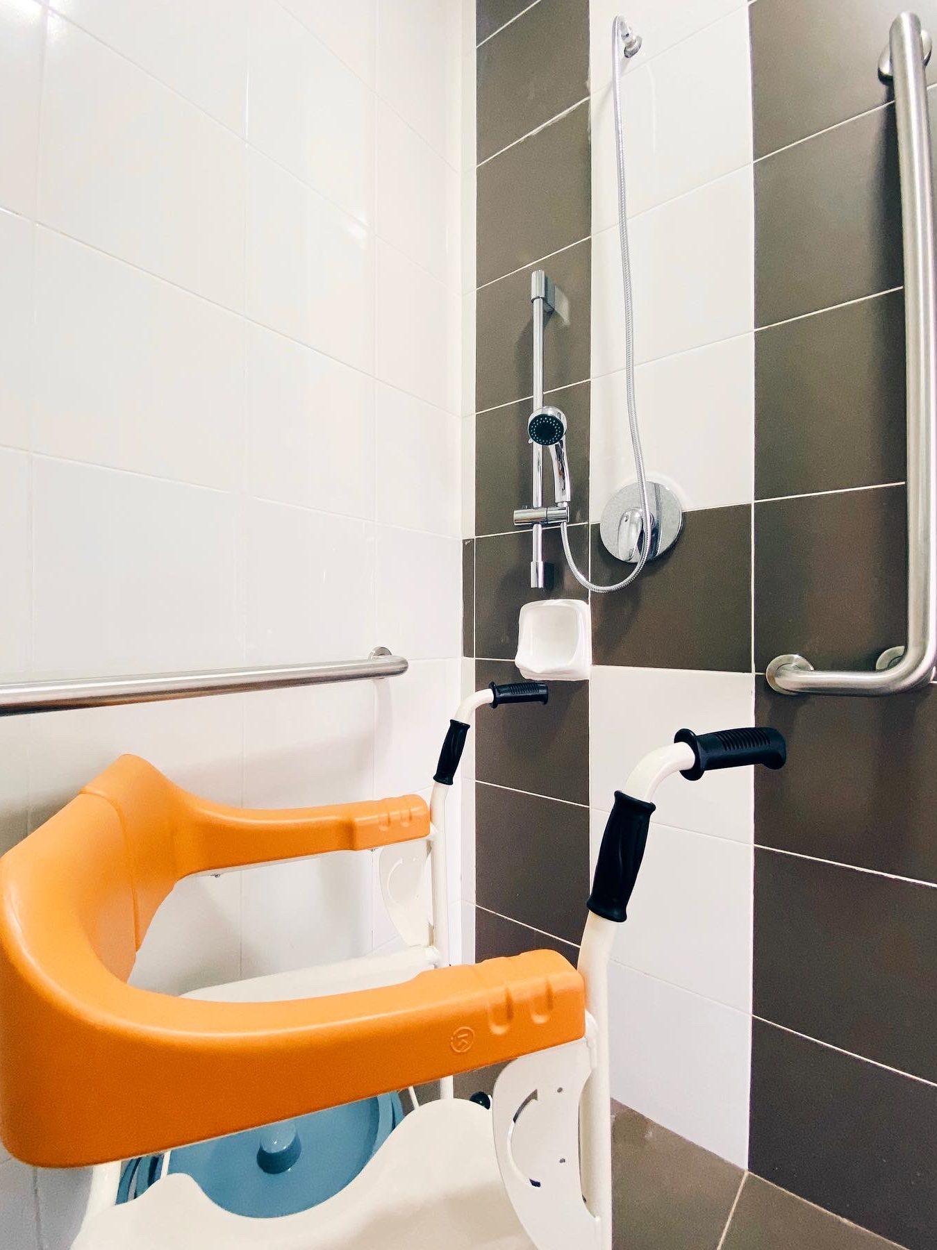 08 / Adjustable shower head, L-grab bar, horizontal grab bar, and commode wheelchair for bedridden patients