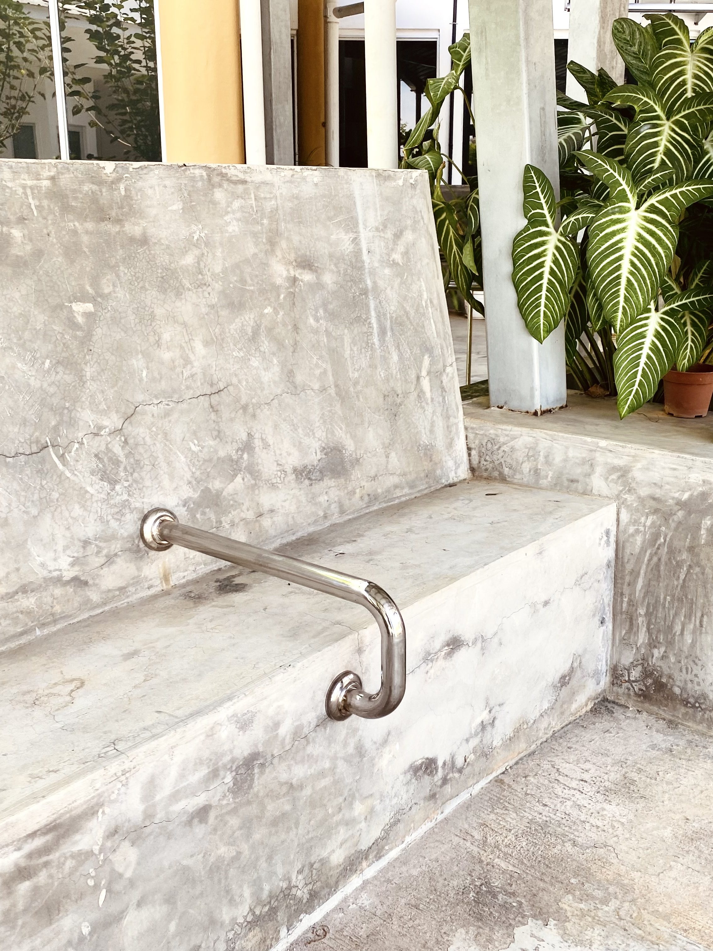 02 / Arm support on the existing bench to ease movement for a person with a knee problem